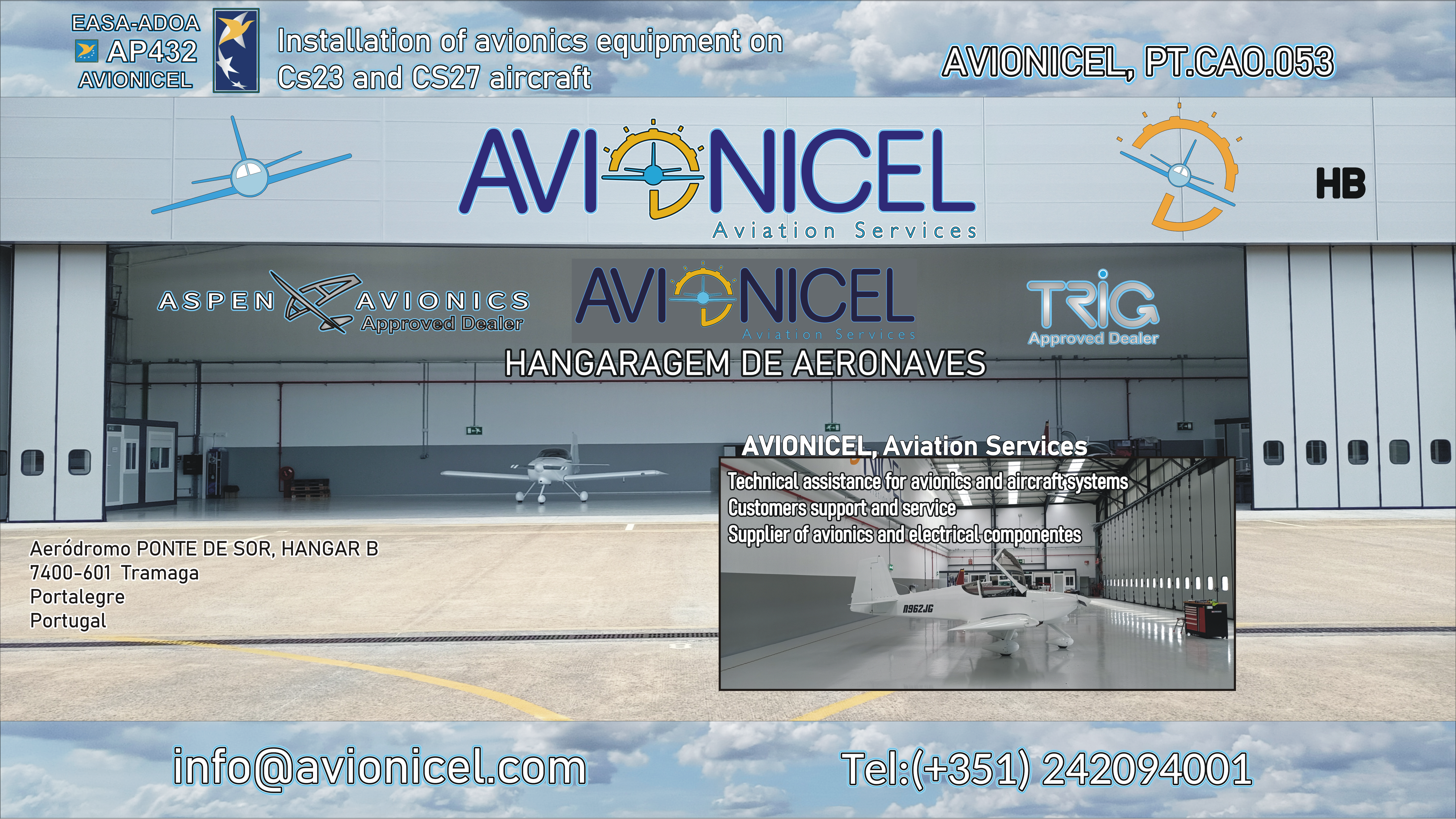AVIONICEL PT.CAO.053, Empresa de Manutenção Geral de Aeronaves, especializada nas áreas das tecnologia eletrónica e elétrica, com a vasta experiência na reparação, no ensaio, na certificação e atualização de equipamento e sistemas, elabora projetos para a instalação e ou modificação com Certificação EASA-ADOA, AVIONICEL AP432 Installation of avionics equipment on CS23 and CS27 aircraft, agora estamos no Aeródromo de Ponte de Sor, HANGAR B, para o apoio personalizado a clientes e suas aeronaves.